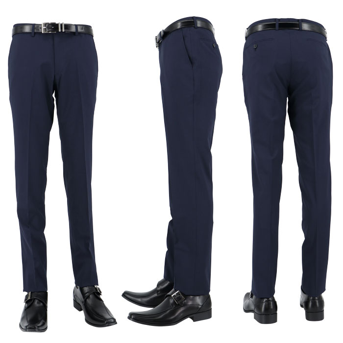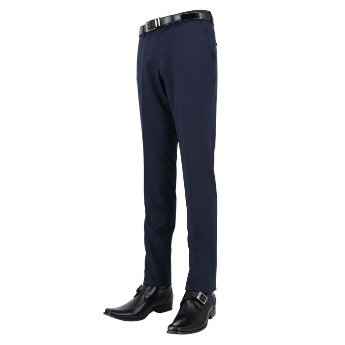 スリムスラックス ネイビー シャドーストライプ ストレッチ リンクルフリー 春夏