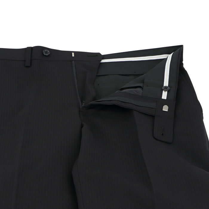 このスリムスラックスは、すっきりとしたノータックデザインとローライズ設計で、スタイリッシュな脚さばきを演出。黒シャドーストライプが控えめな立体感を与え、ビジネスシーンに上品な印象をプラスします。