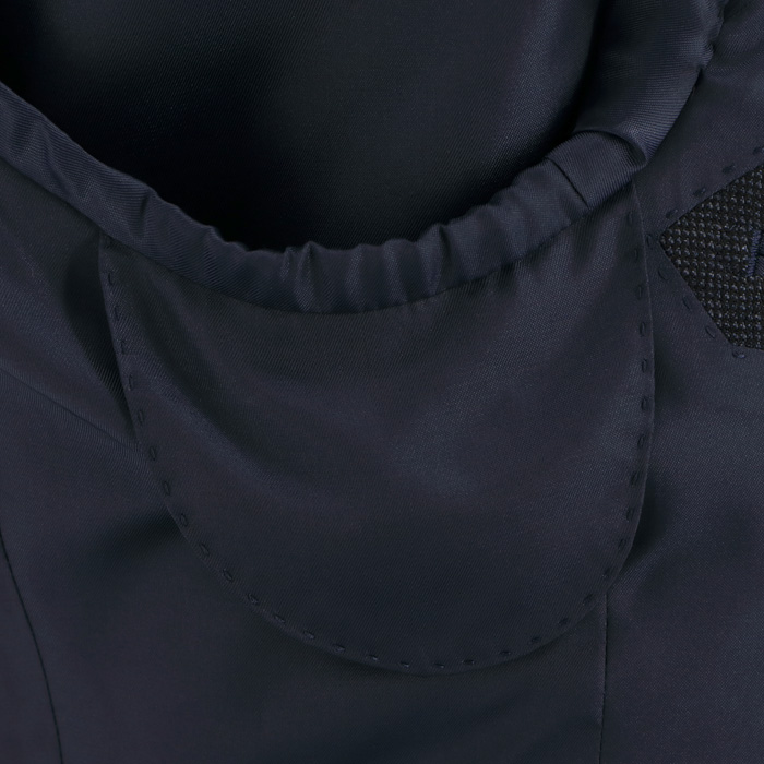 レギュラーラペルにはAMFステッチを採用し、デザインのアクセントに。腰ポケットはスラントポケット。汗止め機能付きの裏地で、外見に汗がにじみ出るのを防ぎます。
