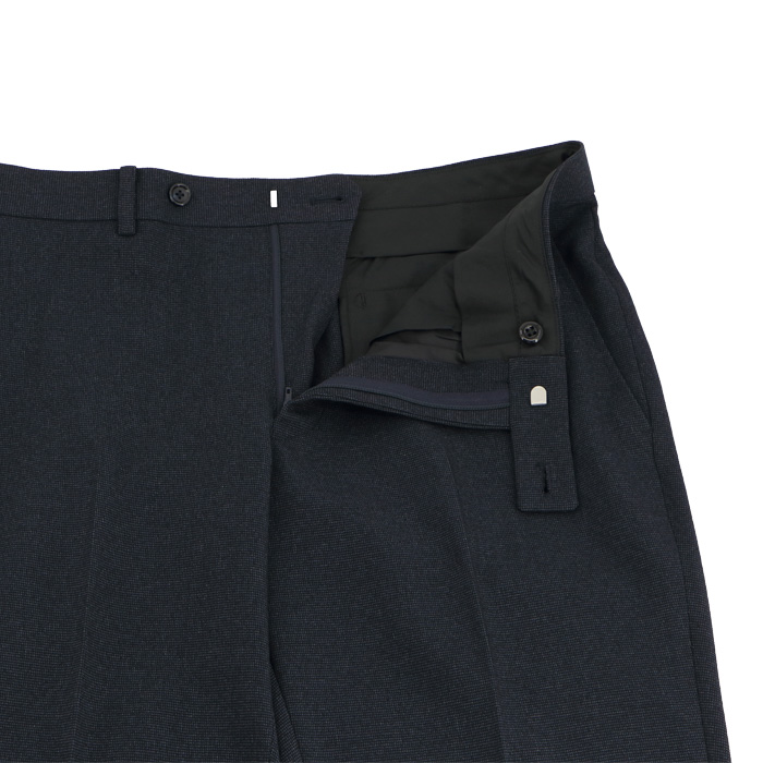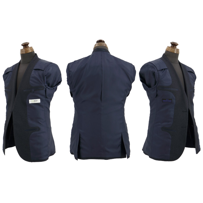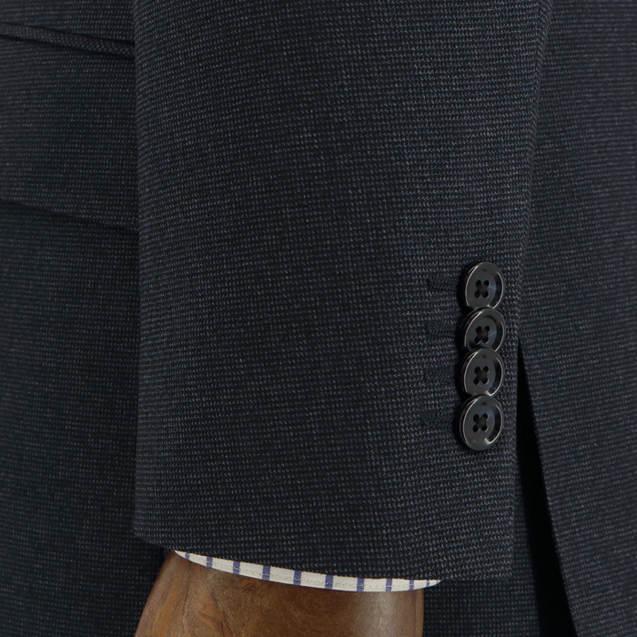 特殊ポリエステルを使用した、ウールのような風合い。ストレッチ性とリンクルフリー(防シワ)機能を備え、日常使いにも最適です。袖は重ねボタン仕様で洗練された印象を与え、裏地はすべりが良いツイルで快適な着心地を実現。