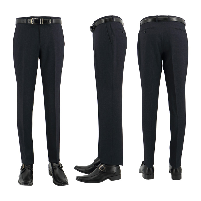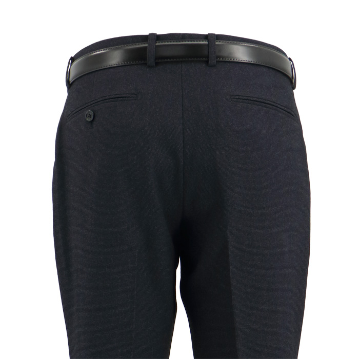 スラックスはスリムフィットで足長効果抜群。表地を補強したひざ裏付きで、耐久性も考慮。洗濯は家庭用洗濯機にも対応しており、お手入れが容易です。