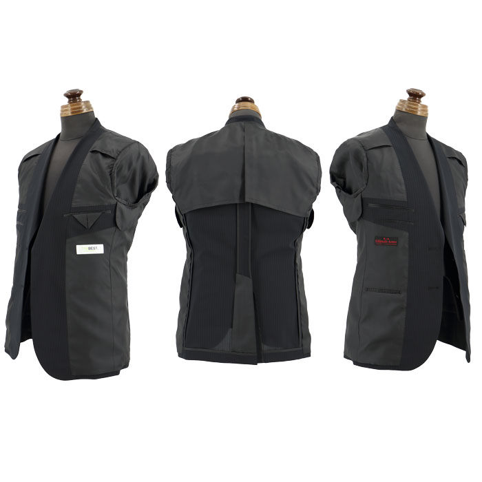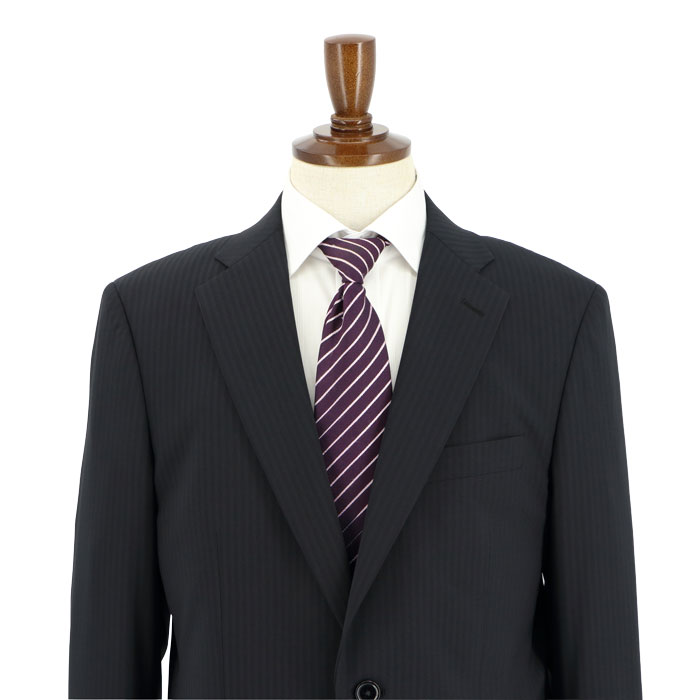 2ボタンジャケット、ノータックスラックスの2点セット。サイドベンツ、AMFステッチなど上品なディテールも備え、ビジネス、就活、式典、パーティ、同窓会など幅広いシーンに対応します。