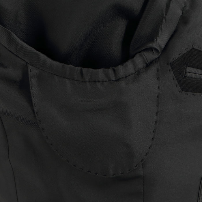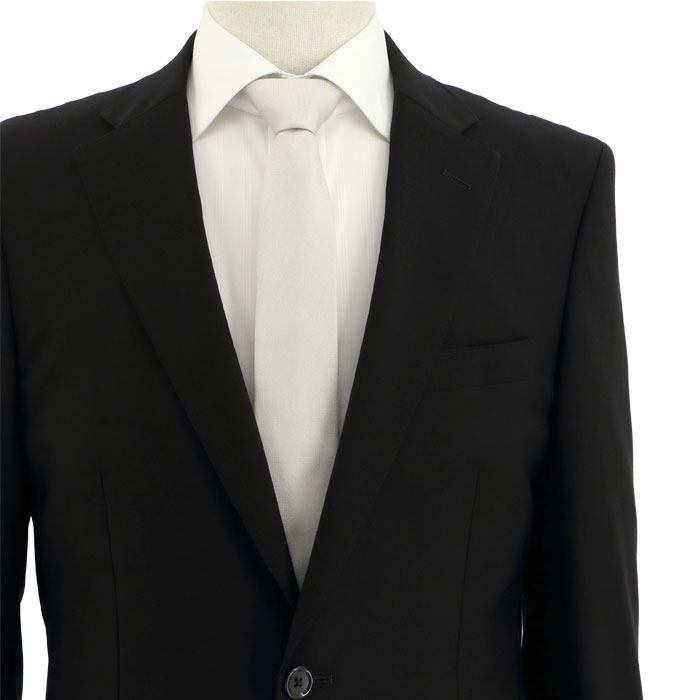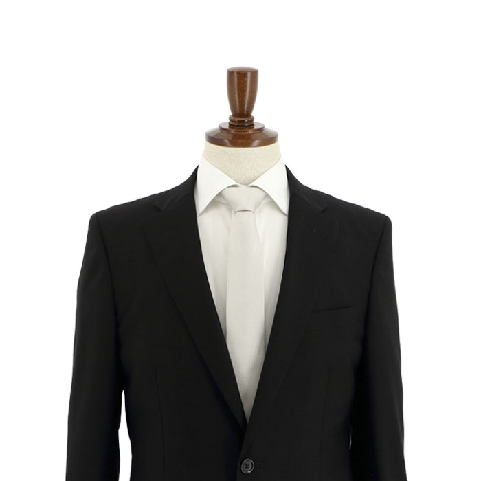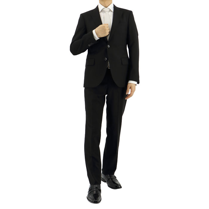 当店が自信を持ってお勧めするスーツは、フォーマルシーンを格上げするために特別に選ばれたブラックの濃染無地生地を使用しています。この高級感溢れる生地は、黒色がさらに深く、洗練された印象を与えます。また、伸縮性に優れたストレッチ素材を採用しており、快適な着心地と動きやすさを実現。さらに、サラサラとした風合いの強撚糸が上質な肌触りを提供します。