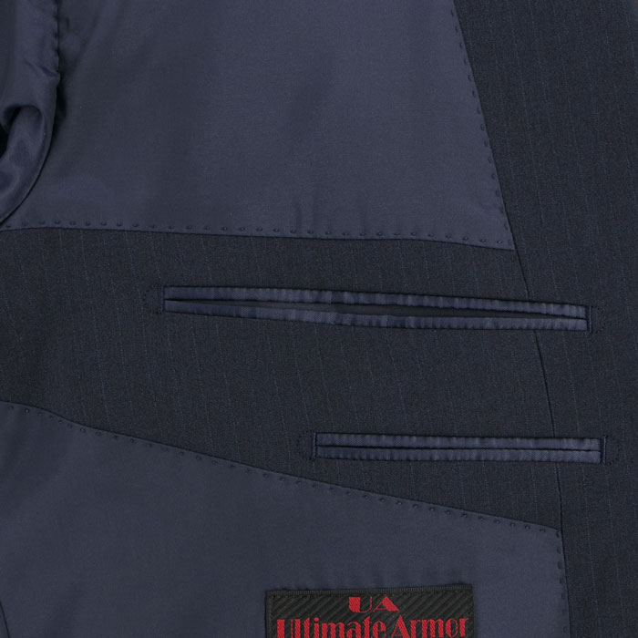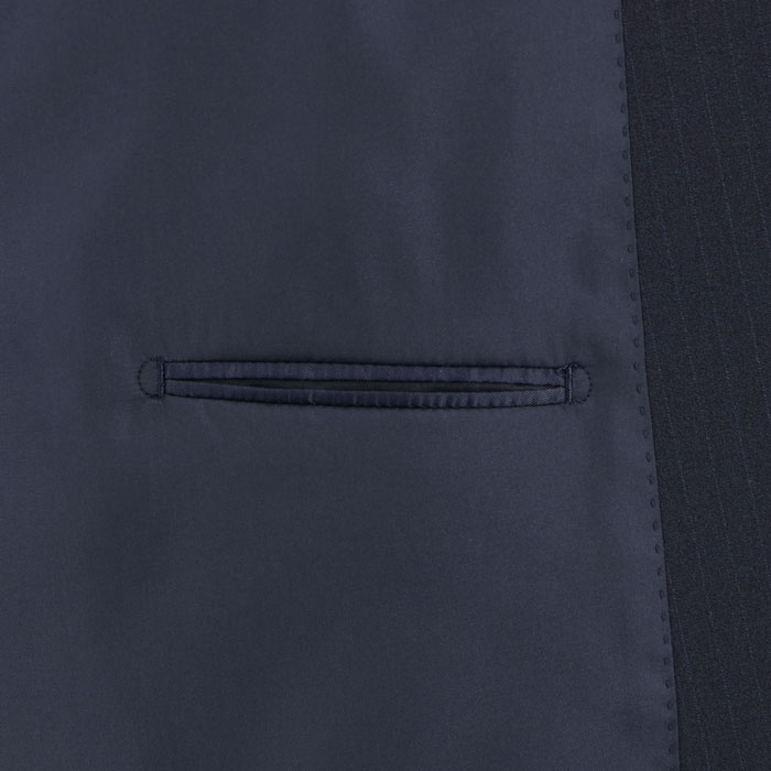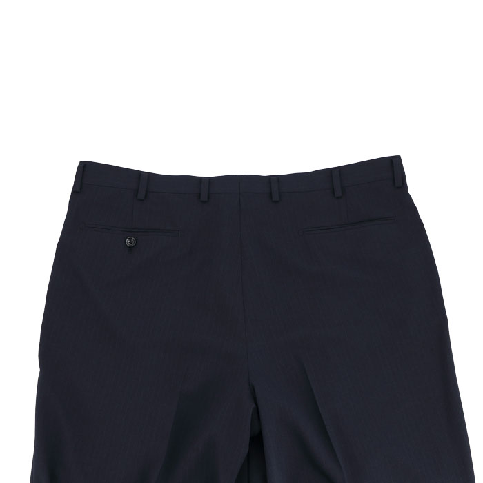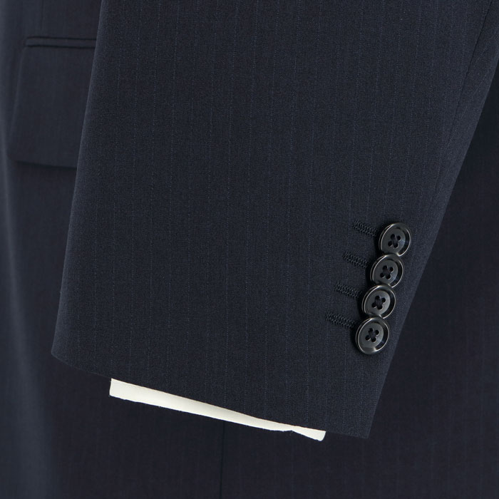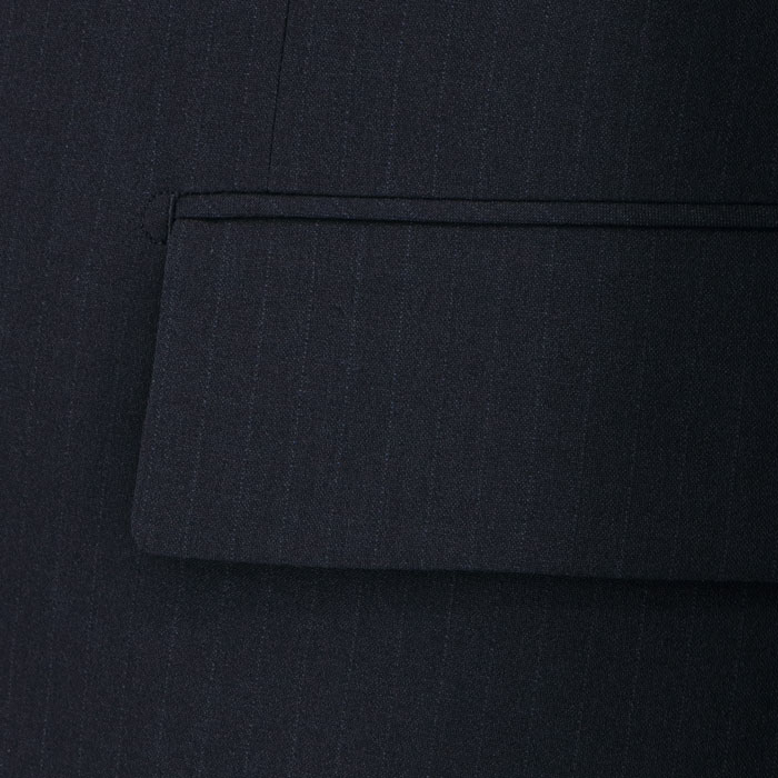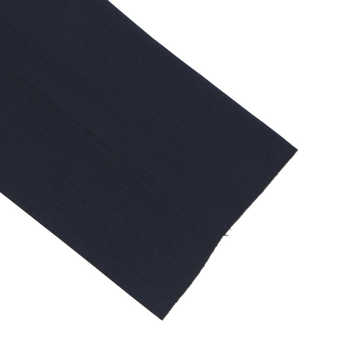 深みのあるネイビーをベースに、繊細な縦ラインを配したストライプ柄。縦のラインが視線を上下に誘導することで、大きいサイズでもすっきりシャープな印象に。ビジネスシーンで信頼感と若々しさを両立します。