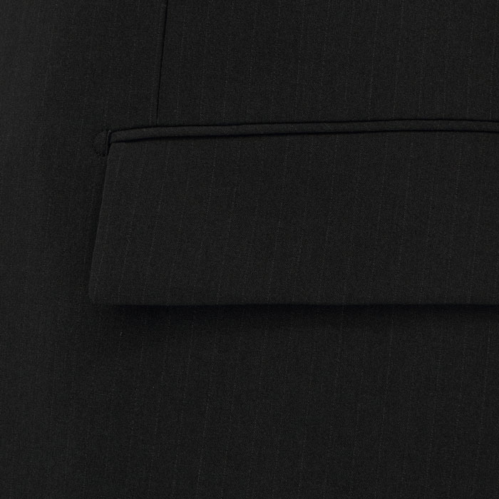 ◆幅広いシーンで活躍する万能ブラックストライプスーツ
