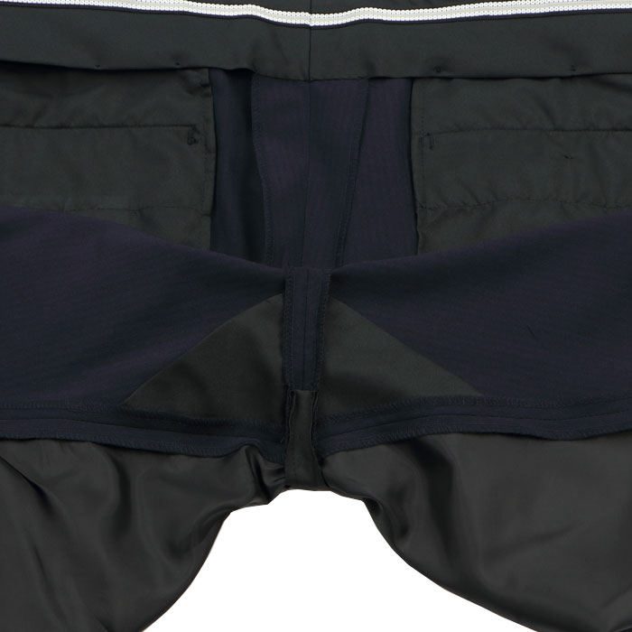 滑り止め付きウエストでシャツの裾落ちを防ぎ、きちんとした印象をキープ。ひざ裏は表地を補強して耐久性アップ。長くご愛用いただける仕様です。